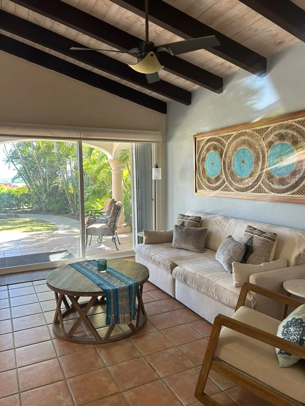 This two-bedroom, two-bathroom duplex home is part of a quiet, gated beachfront community with just 14 residences. Ideal for up to 4 guests, it’s a peaceful place to unwind.